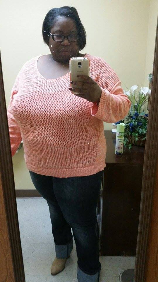 Lane Bryant recently had a massive clearance sale where there were quite a few items that were $6.99.  I didn’t find a ton of things, but I did get this sweater.  The color of this sweater is beautiful and I thought it would be a great color to wear on Halloween.  The cuffed jeans are a few years old from Lane Bryant and I purchased to booties from a local boutique.
