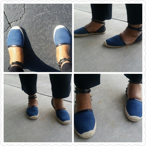 Well, I found a nice little deal on this cute pair of denim and black leather espadrilles by Rebecca Minkoff.  Honestly, I had never seen them before but they must have been a popular summer shoe.  Espadrilles can often be really hard and uncomfortable, but not the case with these beauties.  They are soft and bend with foot movements.  I absolutely adore them.  I got them on a nice discount of about 65% off which made them even that much better.